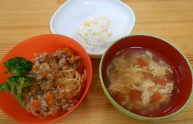 今日は揚げ魚でした。鮭と夏野菜でさっぱりした味でした。