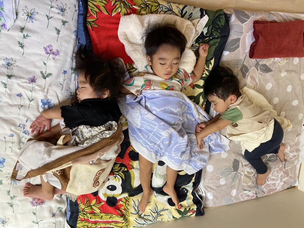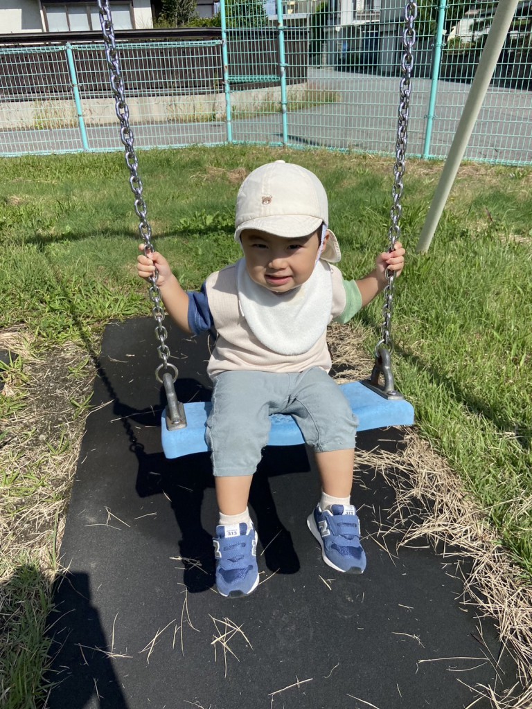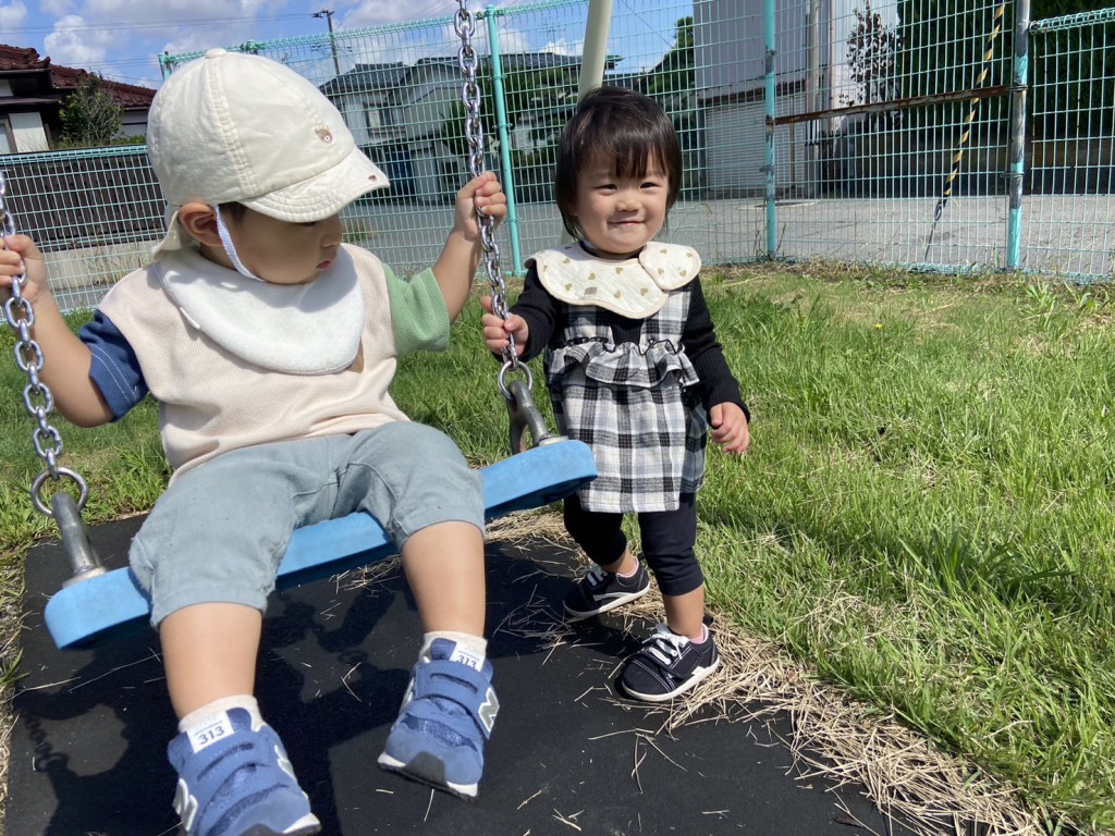0歳児のKちゃんが、1歳児のOくんとR くんを押してくれていました🤣