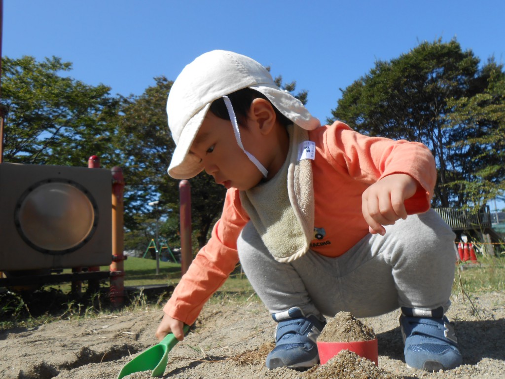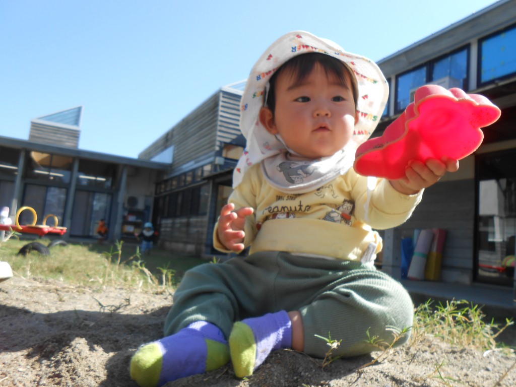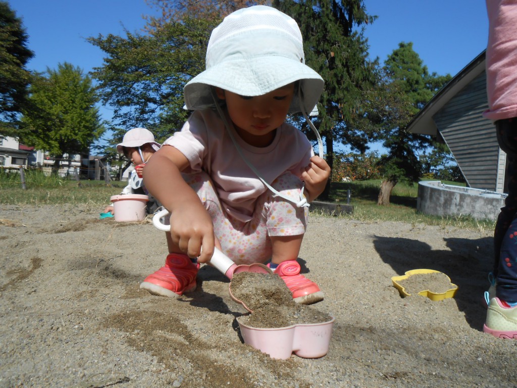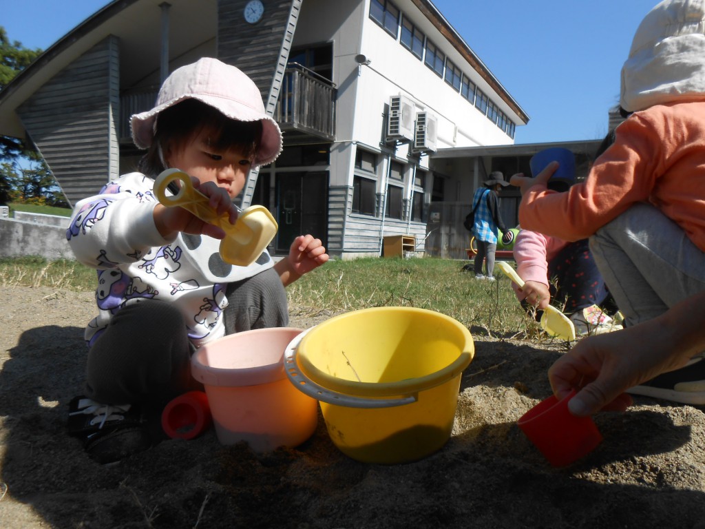 バケツいっぱいに砂を入れたり、色々な型を取ったりして楽しみました😉