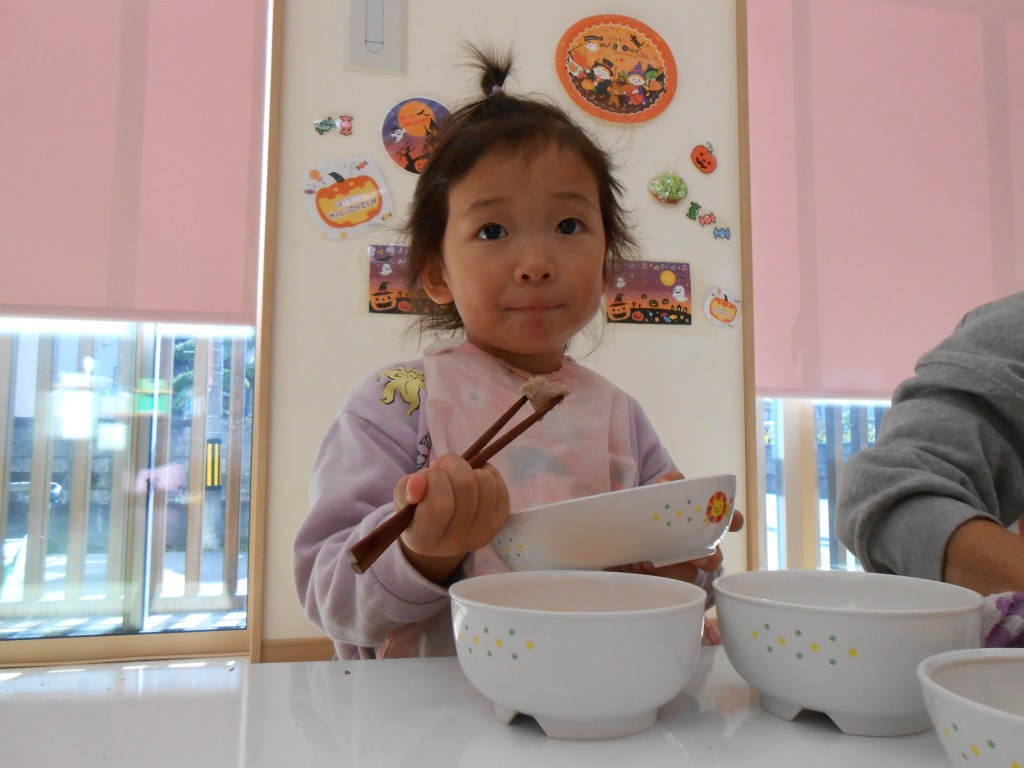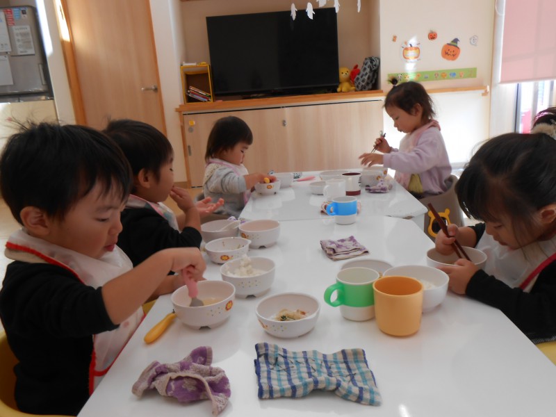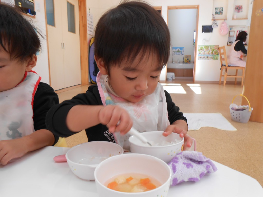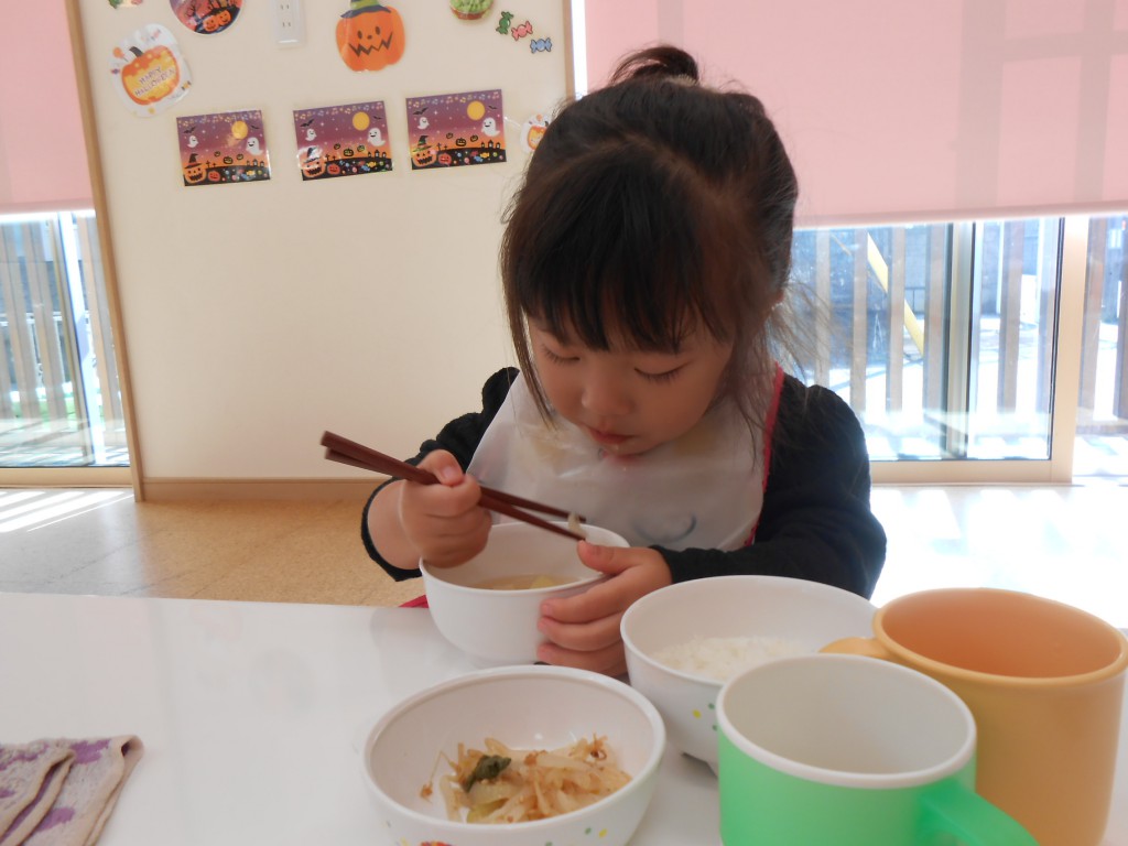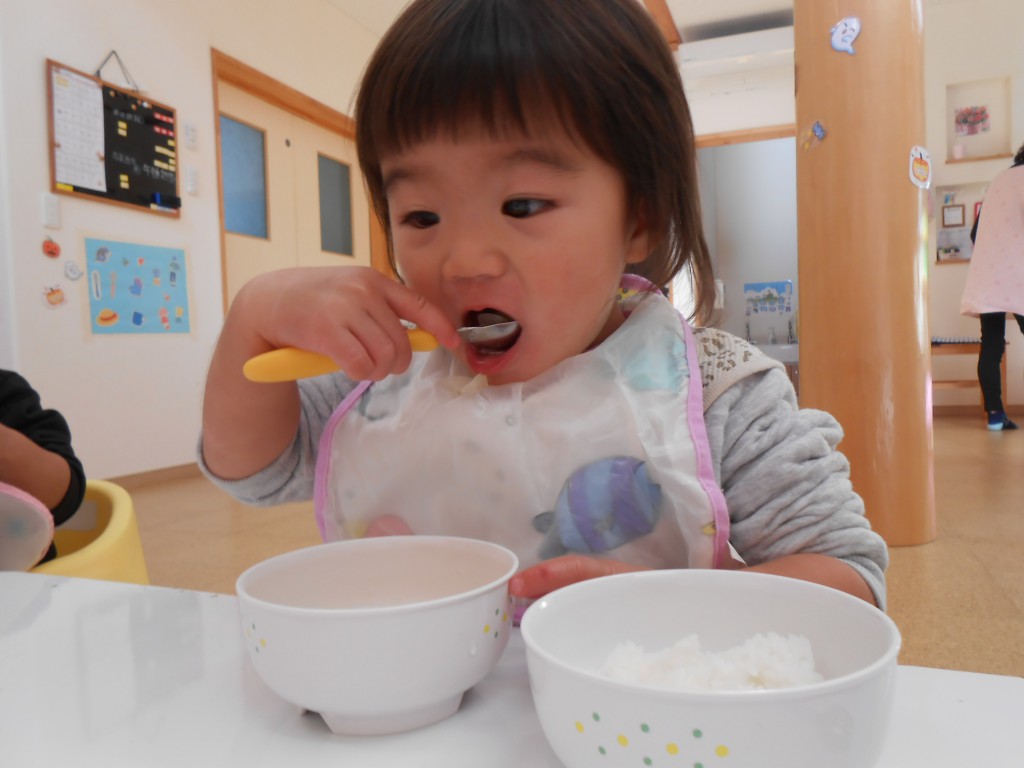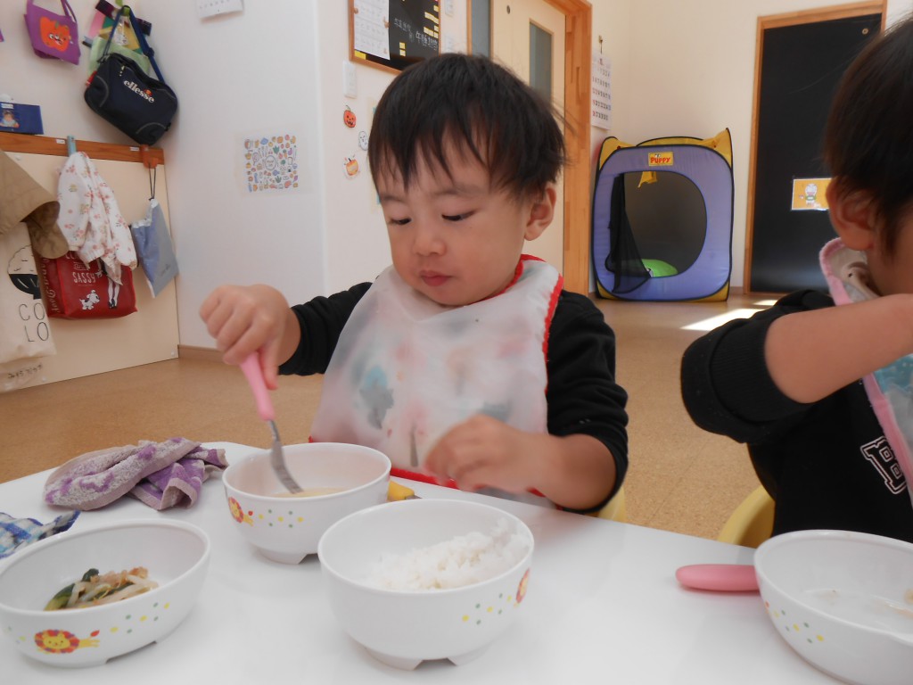 お箸やスプーンフォークを上手に使ってたべています🍚