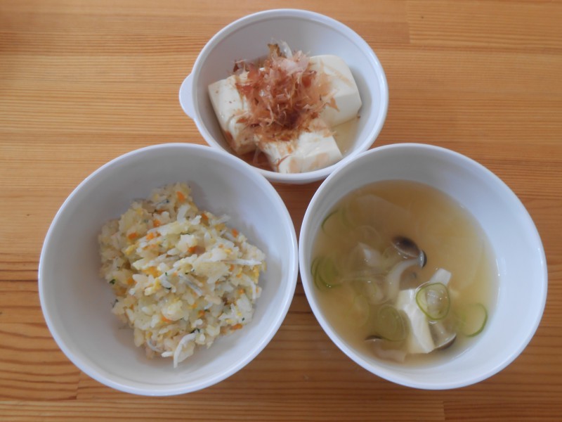 しらすと卵の炒飯(にんじん、玉ねぎ、小松菜)