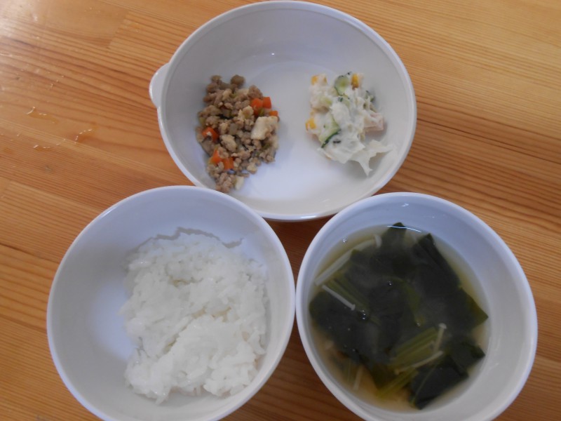 いり豆腐のポロポロを楽しそうに食べていました☆食べることを楽しむのが上手なみんなです!(^^)!