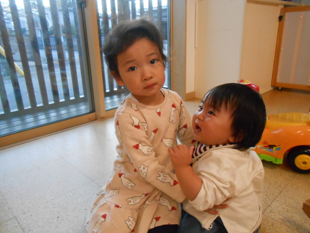 大好きなお姉ちゃんに抱っこしてもらって泣き止みました💦
