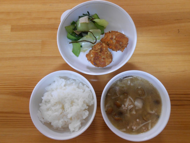 きのこ汁(豚肉、なめこ、椎茸、しめじ、えのき、ねぎ)