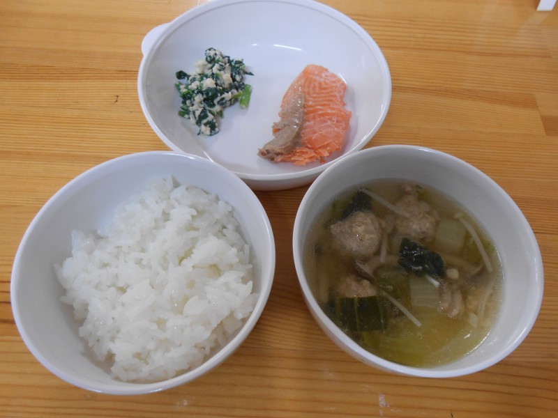 上手に鮭や白和えをご飯のお供にして、ご飯を楽しんでいました😊