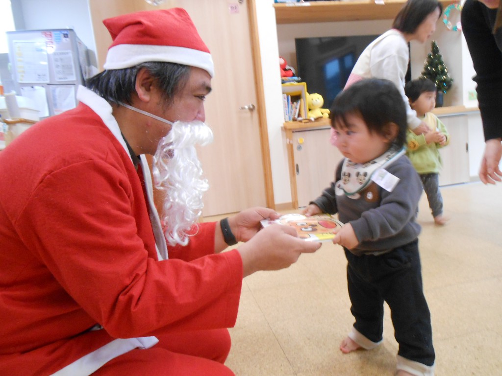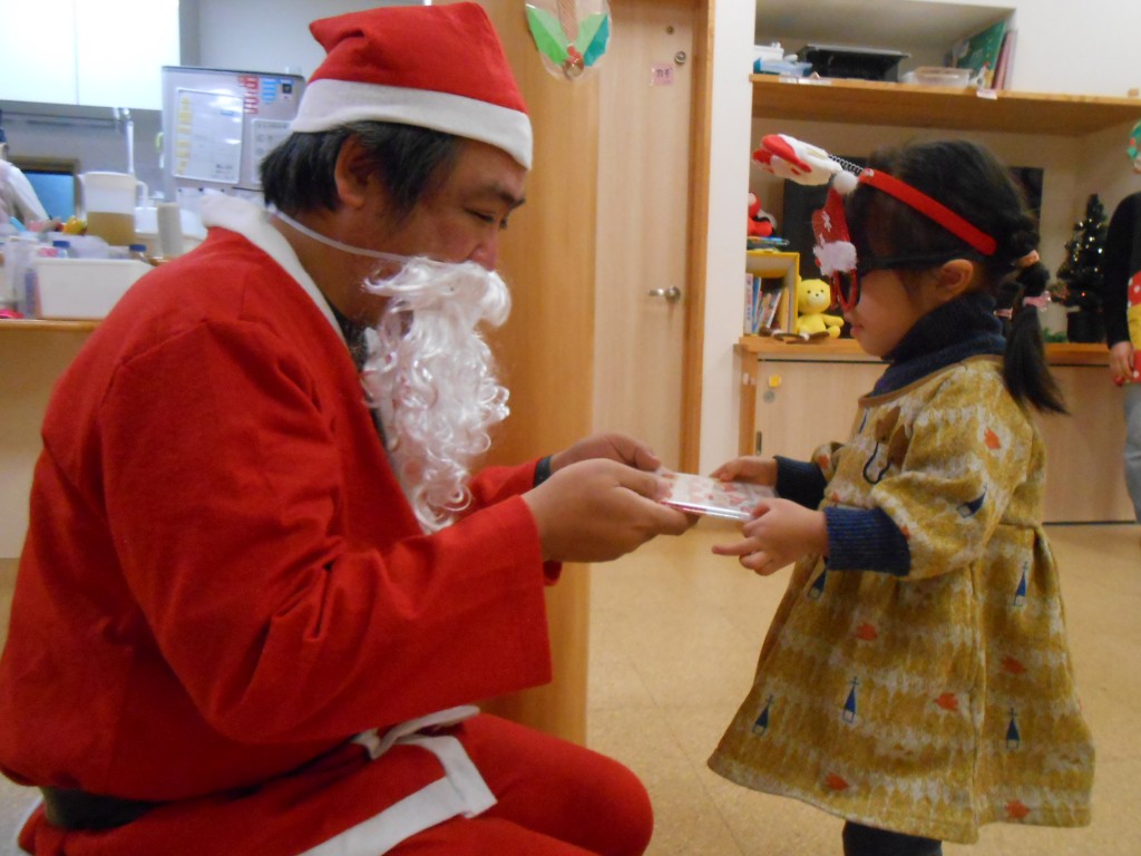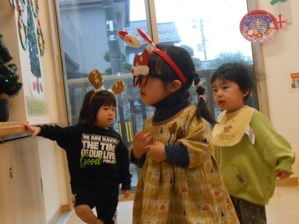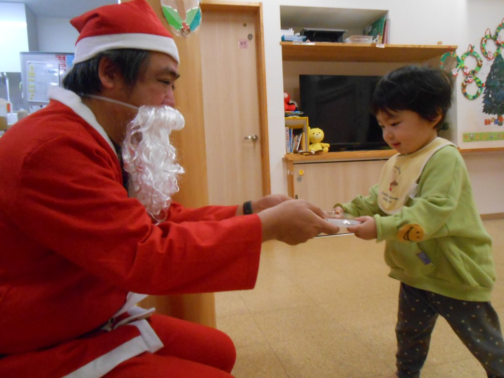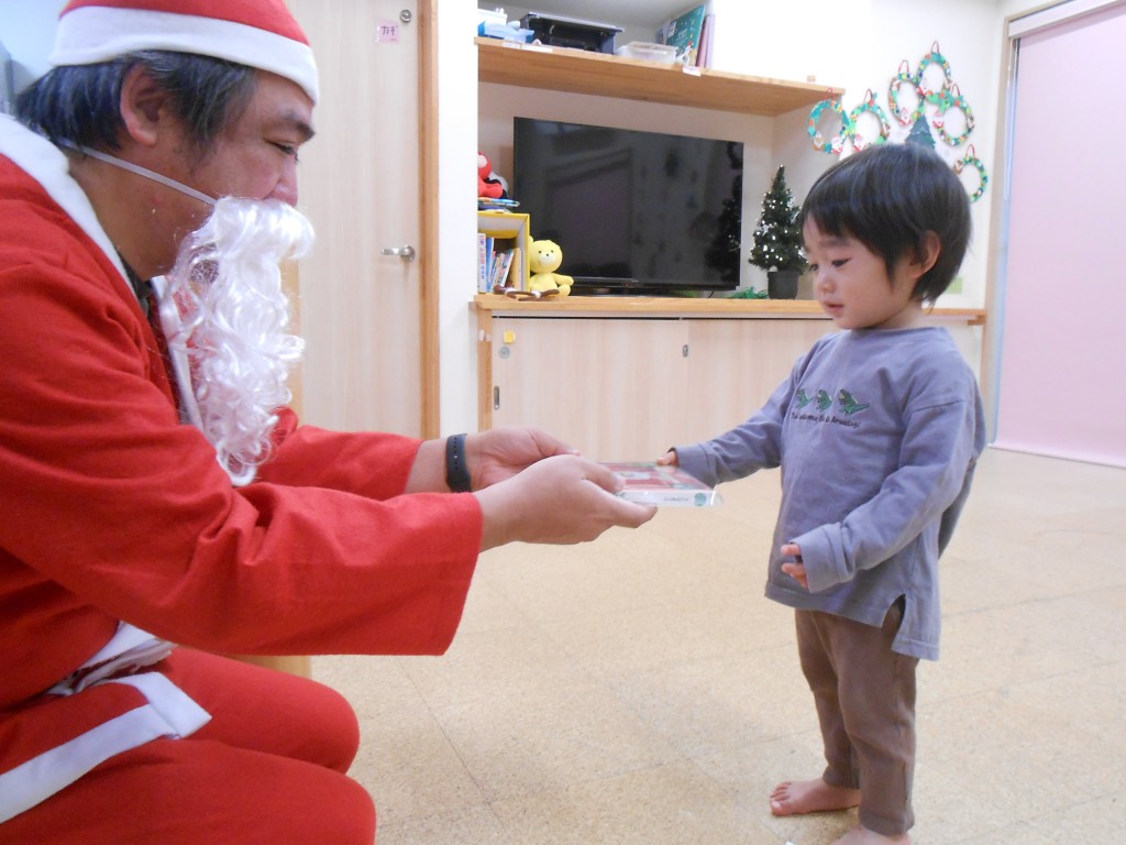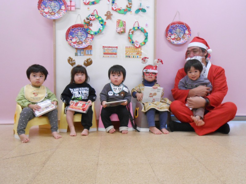 突然、サンタさんが登場❢ 最初はビックリして固まっていたけれど、よく見ると馴染みのあるサンタさん🎅 安心したようで笑顔に戻りました。