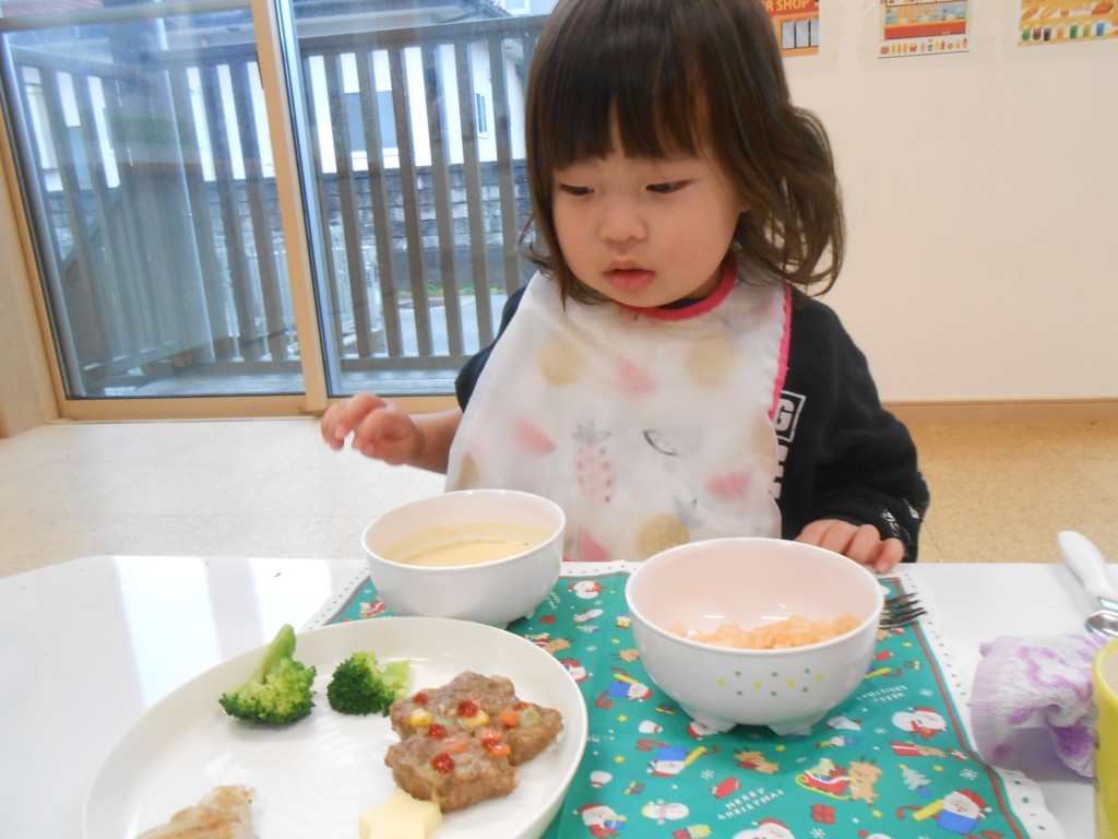 給食もクリスマスメニュー🎄 「わあ~!すごーい😍」いっぱい食べました。