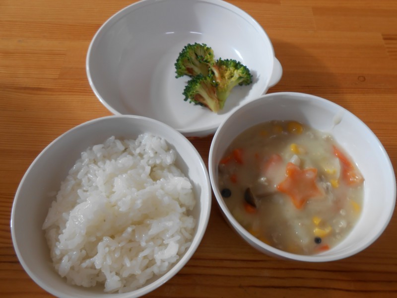 クリームシチュー(豚ひき肉、じゃがいも、玉ねぎ、ぶなしめじ)