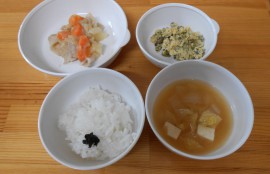 おかゆ、柔らか南瓜煮、豆腐と玉ねぎのみそ汁