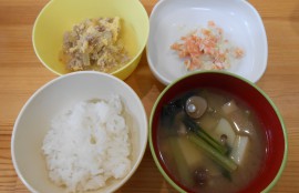 ・柔らかごはん 人参と大根の納豆和え 鶏肉のトマト煮