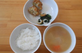今日は、みんなが大好きなかき揚げに、うどんと豪華なメニューでした🎵