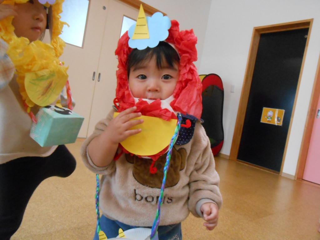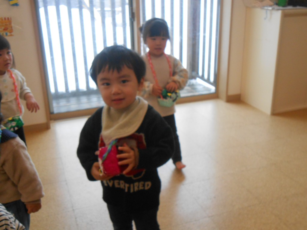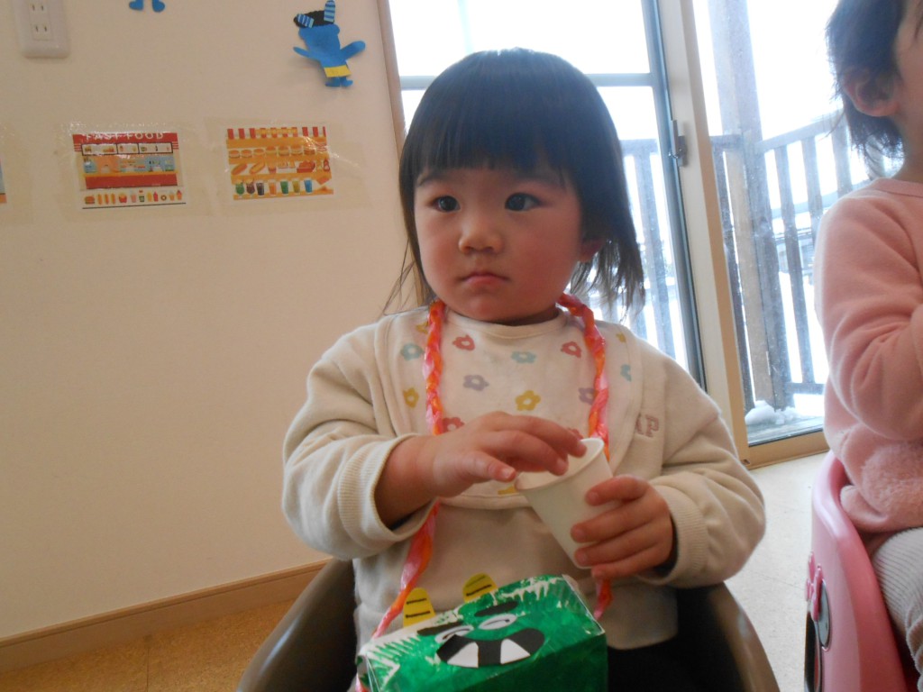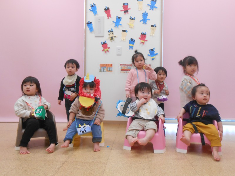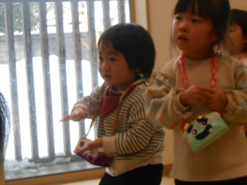 その後は福の神様が豆(ボーロ)を持って来てくれてみんなでいただきました。