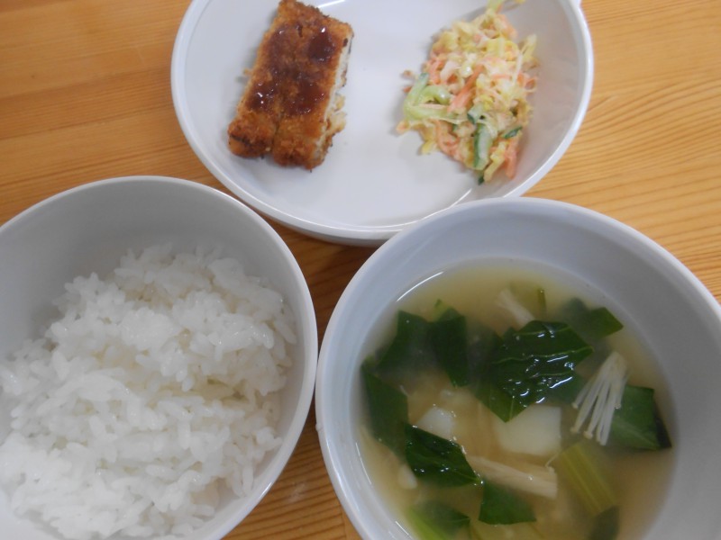 小松菜のみそ汁(小松菜、じゃがいも、えのき)
